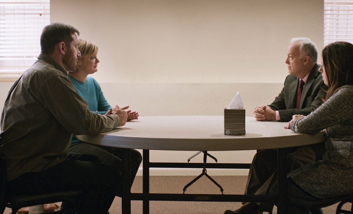 Порою трагедия может кардинальным образом изменить жизнь людей. Немногие отходят от пережитого и пытаются начать жизнь с чистого листа. Именно это и произошло с двумя семейными парами. Супруги соглашаются встретиться после пережитой трагедии и обсудить между собой пережитое событие. Они хотят найти в себе новые силы, чтобы жить дальше. Конечно сложно обсуждать такие вещи, ведь на это нужна исключительная храбрость и самообладание. Изменит ли эта встреча хоть что-то в жизни семейных пар и как будут развиваться дальнейшие события. Сложно сказать, ведь прошлое никогда никого не отпускает.