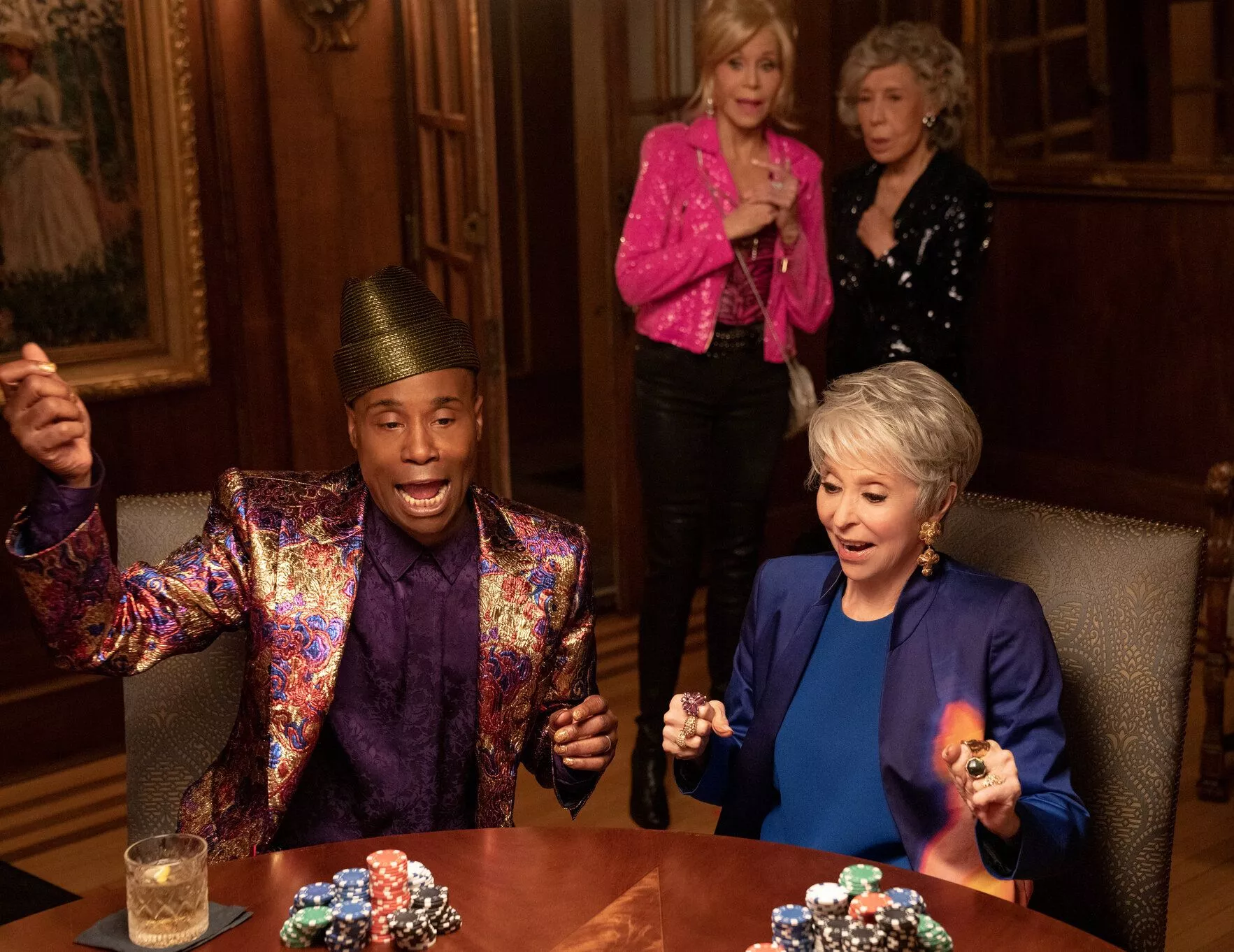 - В ролях:Лили Томлин Джейн Фонда Рита Морено Салли Филд Том Брэйди Билли Портер Гарри Хэмлин Гай Фиери Алекс Моффат Роб Кордри