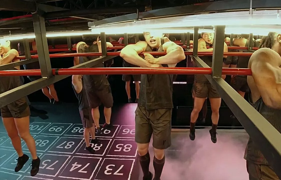 100 спортсменов и спортсменок выполняют задания на силу, скорость, ловкость и выносливость.