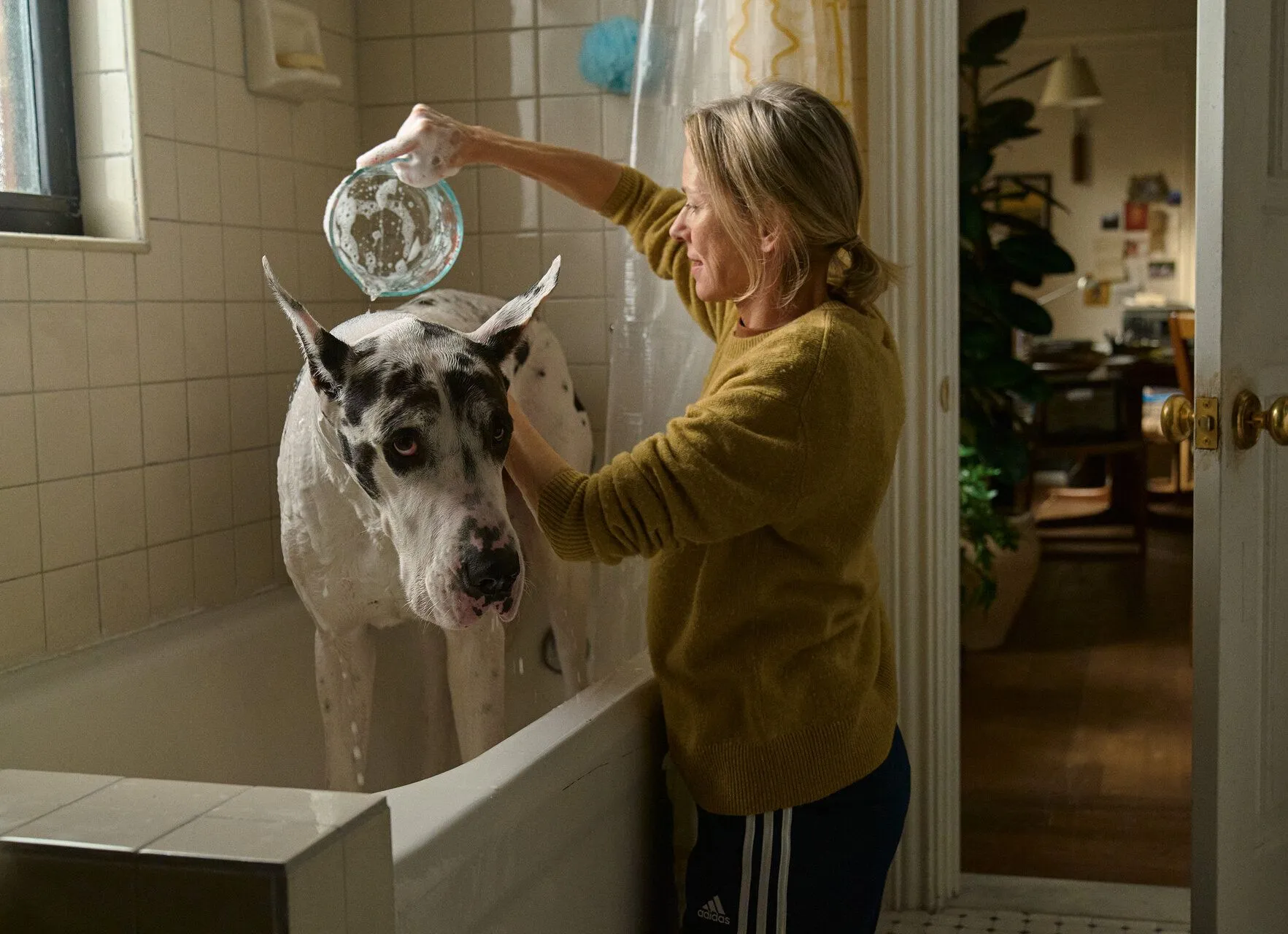 Писательница Айрис ведет тихую и уединенную жизнь в Нью-Йорке, пока однажды не получает неожиданное наследство от своего близкого друга и наставника - огромного дога по кличке Аполлон. Это благородное, но крайне непослушное животное быстро приносит Айрис массу проблем: от разрушенной мебели до угрозы выселения. Но чем больше времени она проводит с новым другом, тем сильнее осознает - не только она может помочь ему справиться с утратой, но и он ей.